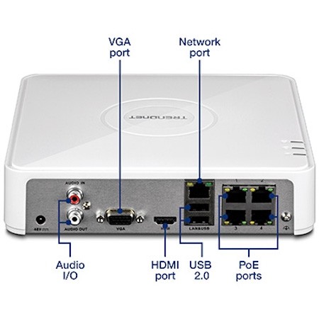 ضبط ویدئو از 16 کانال | امکان مدیریت تا شانزذه دوربین TRENDnet | پشتیانی از ۲ هارد با ظرفیت بیش از ۱۲ ترابایت