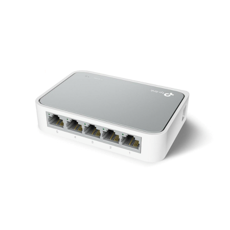 سوییچ «TL-SF1005D » محصولی از برند «تی پی-لینک» (TP-LINK) است. این سوییچ دارای 5 پورت LAN است و میتواند برای گسترش شبکه و متصلکردن تعداد بیشتری از کاربران به آن مورد استفاده قرار بگیرد. پورتهای LAN بهکاررفته در TL-SF1005D از نوع 10/100 مگابیتی هستند که این سوییچ را به انتخاب مناسبی برای شبکههای خانگی تبدیل میکنند. تمام پورتهای LAN به قابلیت Auto MDI/MDIX مجهز هستند و میتوانید از هر نوع کابل مجهز به سوکت RJ45 روی آنها استفاده کنید. با استفاده از چنین سوییچی میتوانید کامپیوتر دسکتاپ و لپتاپ، کنسول بازی خانگی، ذخیرهساز NAS و دوربینهای نظارتی منزلتان را به شبکه وصل کنید. ظرفیت سوییچینگ در این محصول یک گیگابیت بر ثانیه است و پهنای باند انتقال داده در حالت استفاده از Full Duplex Mode تا 200 مگابیت بر ثانیه خواهد رسید. LED نشاندهندهی روشنبودن سوییچ، در قسمت بالای بدنه تعبیه شده است و LEDهای نشاندهندهی فعالیت هر پورت، روی همان پورت قرار گرفتهاند. برق مورد نیاز سوییچ، TL-SF1005D Ver 13.0 توسط آداپتور خارجی تامین میشود و با استفاده از Green Technology بهکاررفته درون سوییچ، میزان مصرف برق آن بسیار ناچیز است.